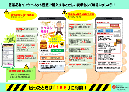 - 販売サイトに法令に基づく表示事項が記載されているか確認しましょう。