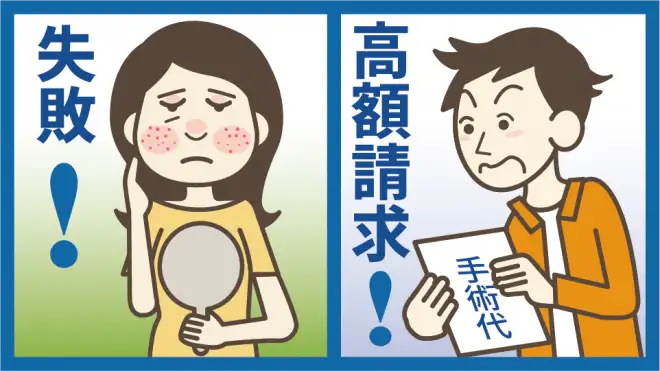 • 美容クリニックで顔のリフトアップの施術を受けたところ、出来栄えが左右非対称となり、傷が残った。返金を求めたい。